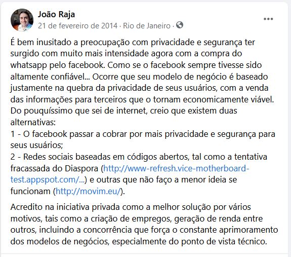 Geopolitica, Redes SociaisSobre o facebook (2014) 05/03/202410/12/2024 joaoraja https://www.facebook.com/joao.raja/posts/712314928789171 https://twitter.com/joaoraja/status/1520091760092921859 Compartilhe!TweetCurtir Carregando... Relacionado Publicado por joaoraja Advogado, especialista lato sensu em PI. Ver todos os posts de joaoraja