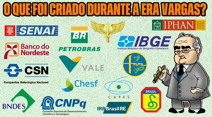 Principais empresas estratégicas e instituições que Getúlio Vargas criou desde 1930 quando tomou o poder: